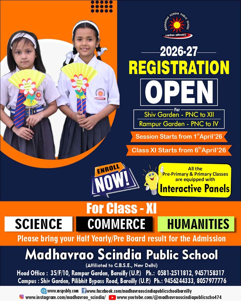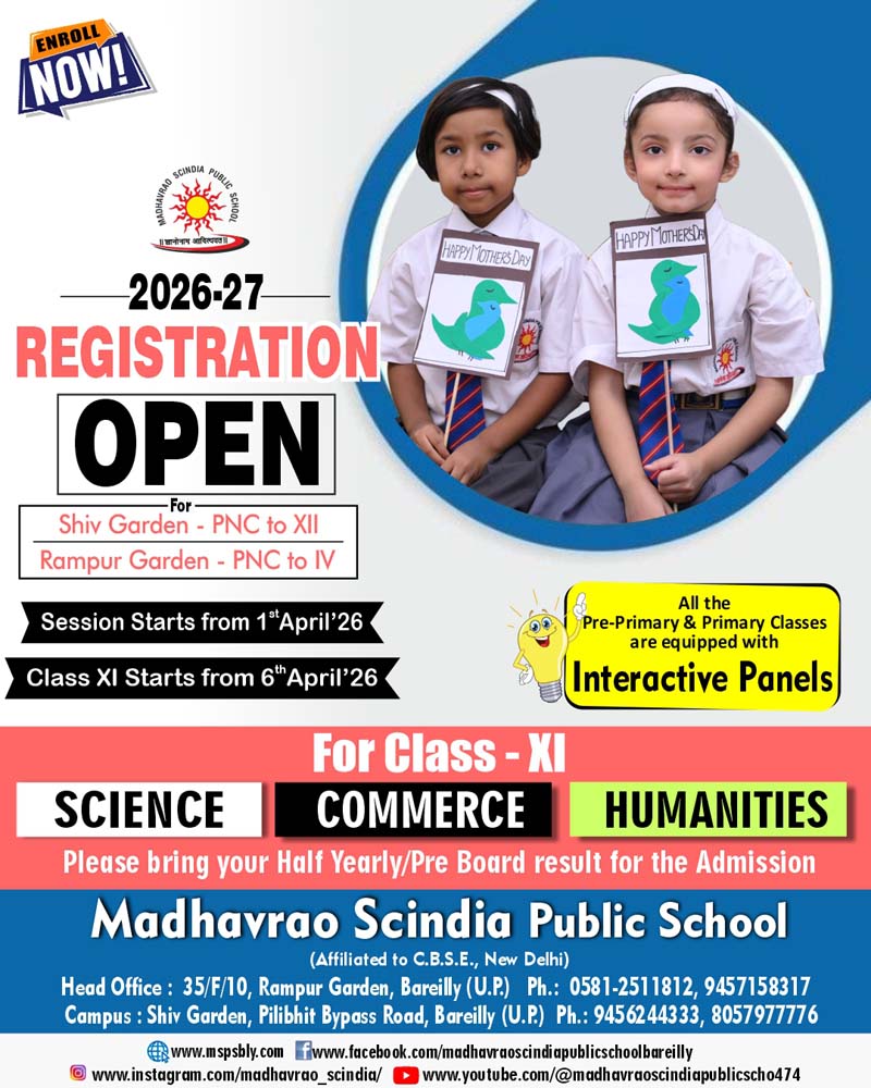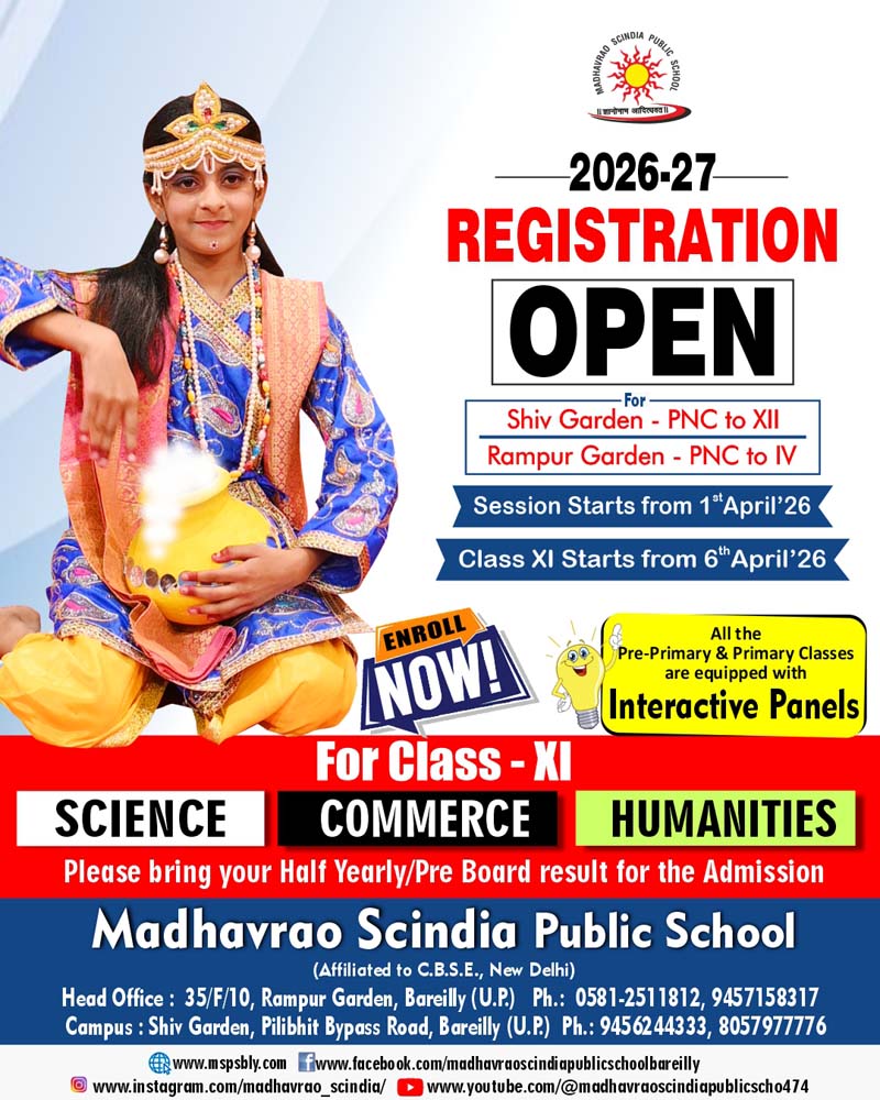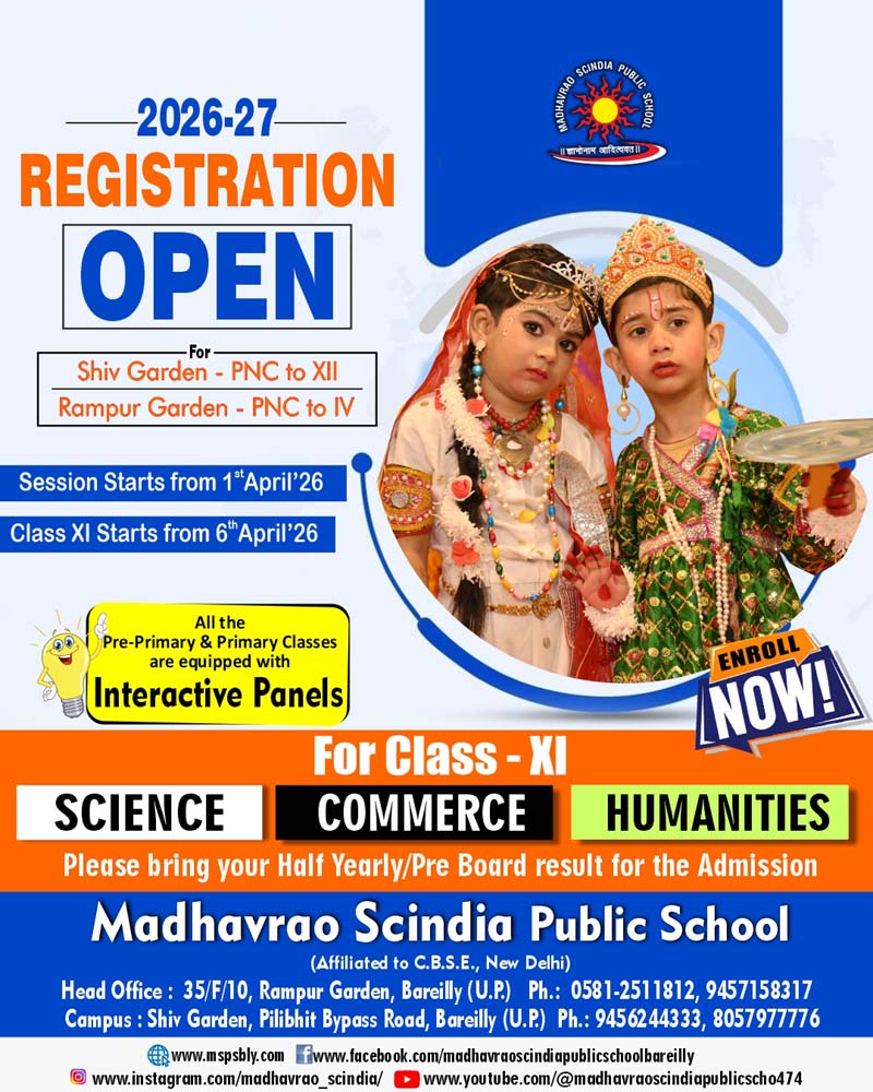 We warmly welcome you to Madhavrao Scindia Public School, the institution committed to imparting quality education, and providing the very best facilities and environment, conducive to imbibe values, acquire knowledge, to pursue goals of education. Highly qualified and experienced team is there at Madhavrao Scindia Public School to provide an innovative educational input. The phenomenal results outside, achievements in sports, co-curricular, and academics, have brought the school to a pedestal.