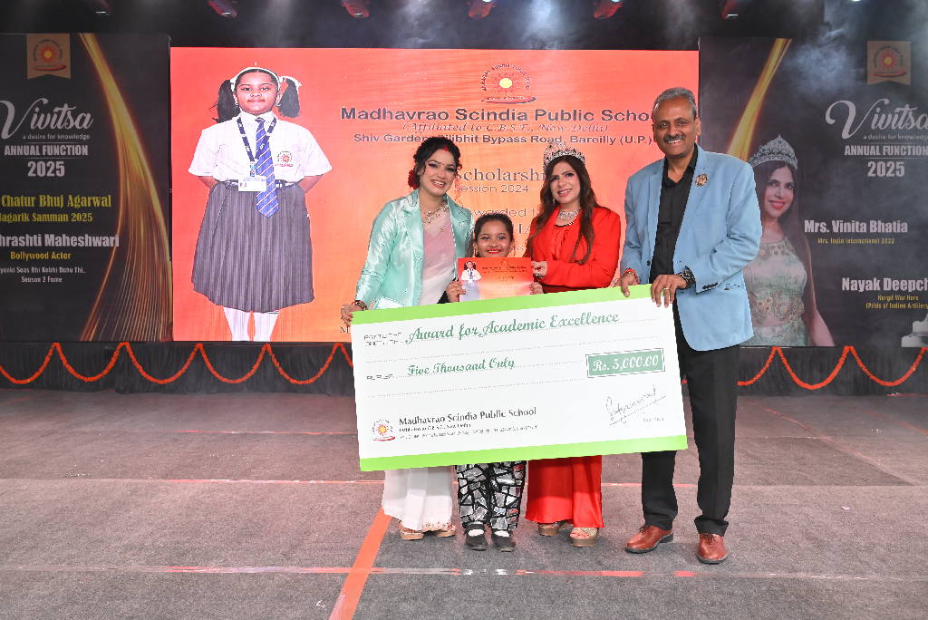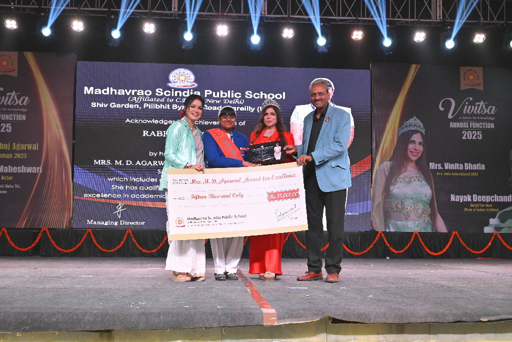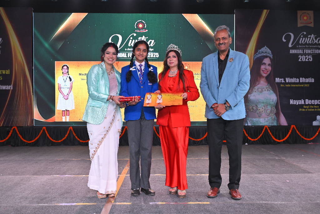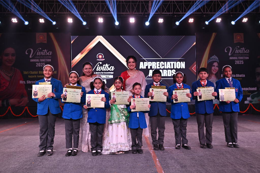 Each year, the management demonstrates its commitment of recognizing and fostering exceptional students across all classes by offering substantial scholarships and awards. Meritorious students who attain the top positions in their respective classes are granted a scholarship of Rs. 5000. Additionally, proficiency awards are presented to individuals achieving the highest marks in subjects such as English, Hindi, Mathematics, Science, and Social Science. Furthermore, students with perfect attendance receive special recognition. Along with these awards ,three Excellence Awards worth Rs. 11000, Rs 15000 & Rs.20000 are also awarded and they are meant to applaud the outstanding students for their persistent and commendable performance in all spheres. From this year, the school management has started felicitating the toppers of Class X and XII Boards with a cash reward of ₹21000 each. These accolades include two outside awards that is Rani Smriti Excellence Award with a cash prize of ₹10000 and Mrs. Manorama Agarwal award for Exemplary Discipline to four students with a cash prize of ₹11000 each. All the awards are accompanied by personalized certificates which is a cherished memory for lifetime. These accolades are meant not only to applaud the achievers but also to ignite the spark in some more young minds.